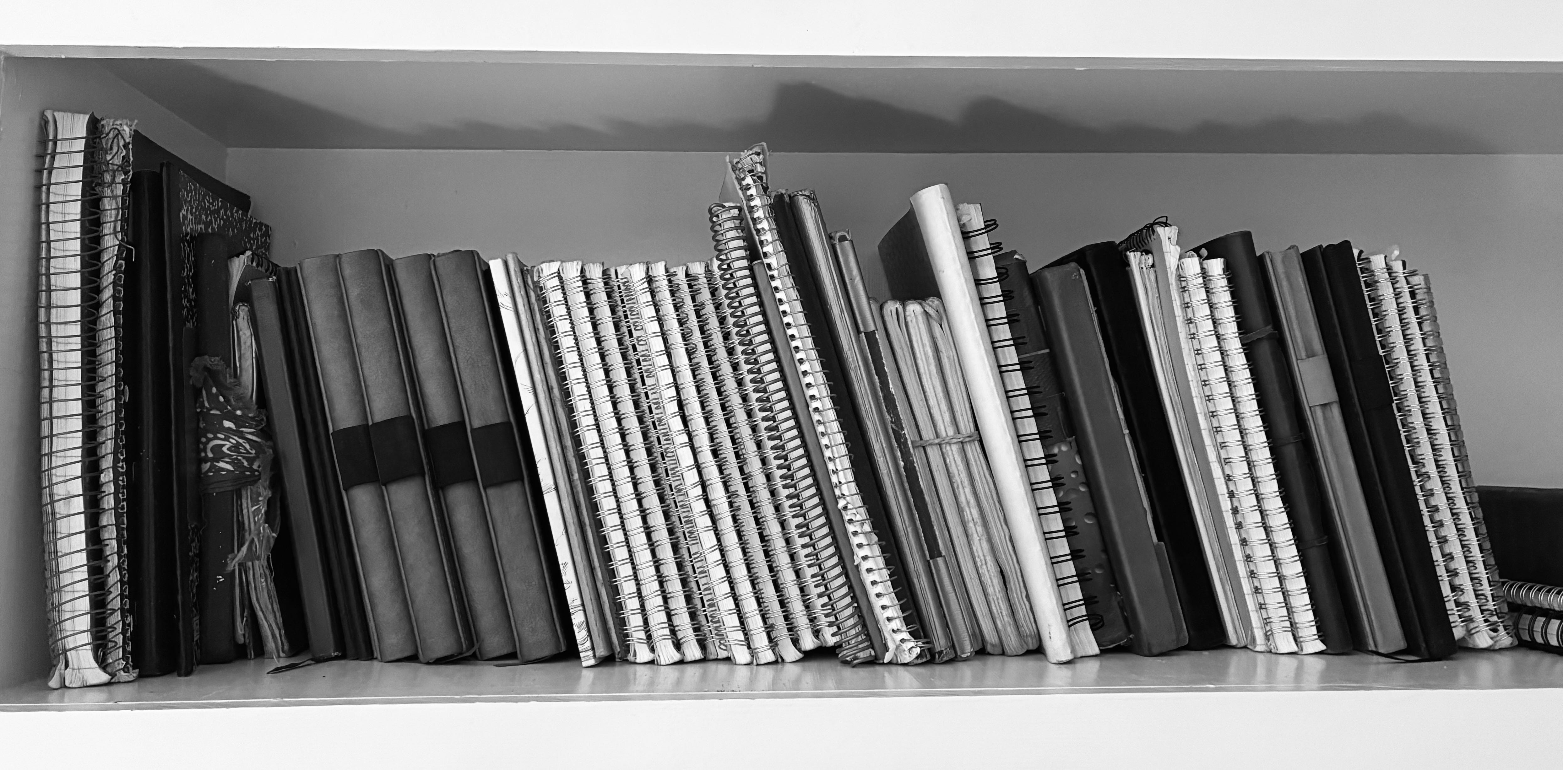 From time to time I thumb through old journals. They’re on the top shelf in my office presently, a space reserved for the finest spirits and indulgences.